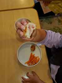 おやつの時間に目の前で焼いてもらい、甘~い匂いに食欲も倍増したようでした😅